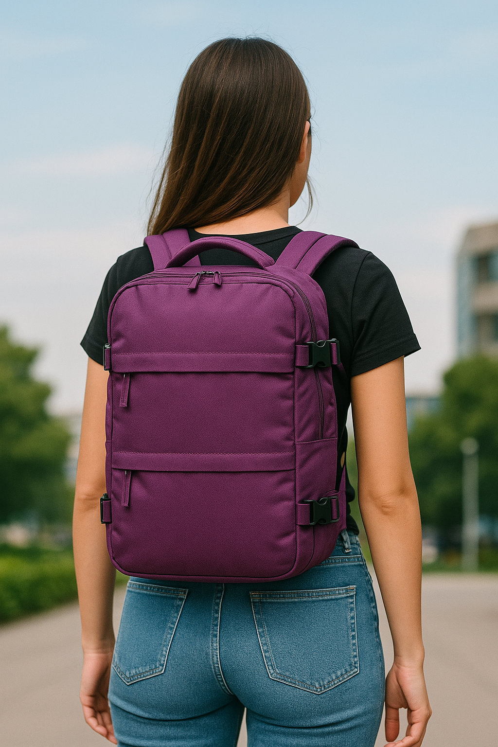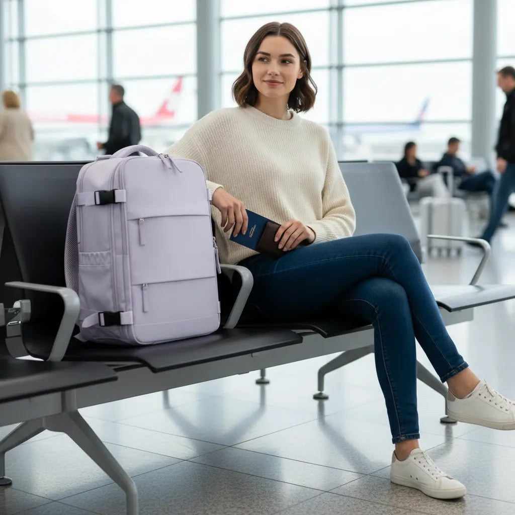 "Me acompañó en un viaje de 2 semanas y fue perfecta. Ligera, resistente y con mucho espacio para todo. El bolsillo antirrobo me dio tranquilidad en aeropuertos, y el puerto USB me salvó varias veces. ¡Totalmente recomendada!"